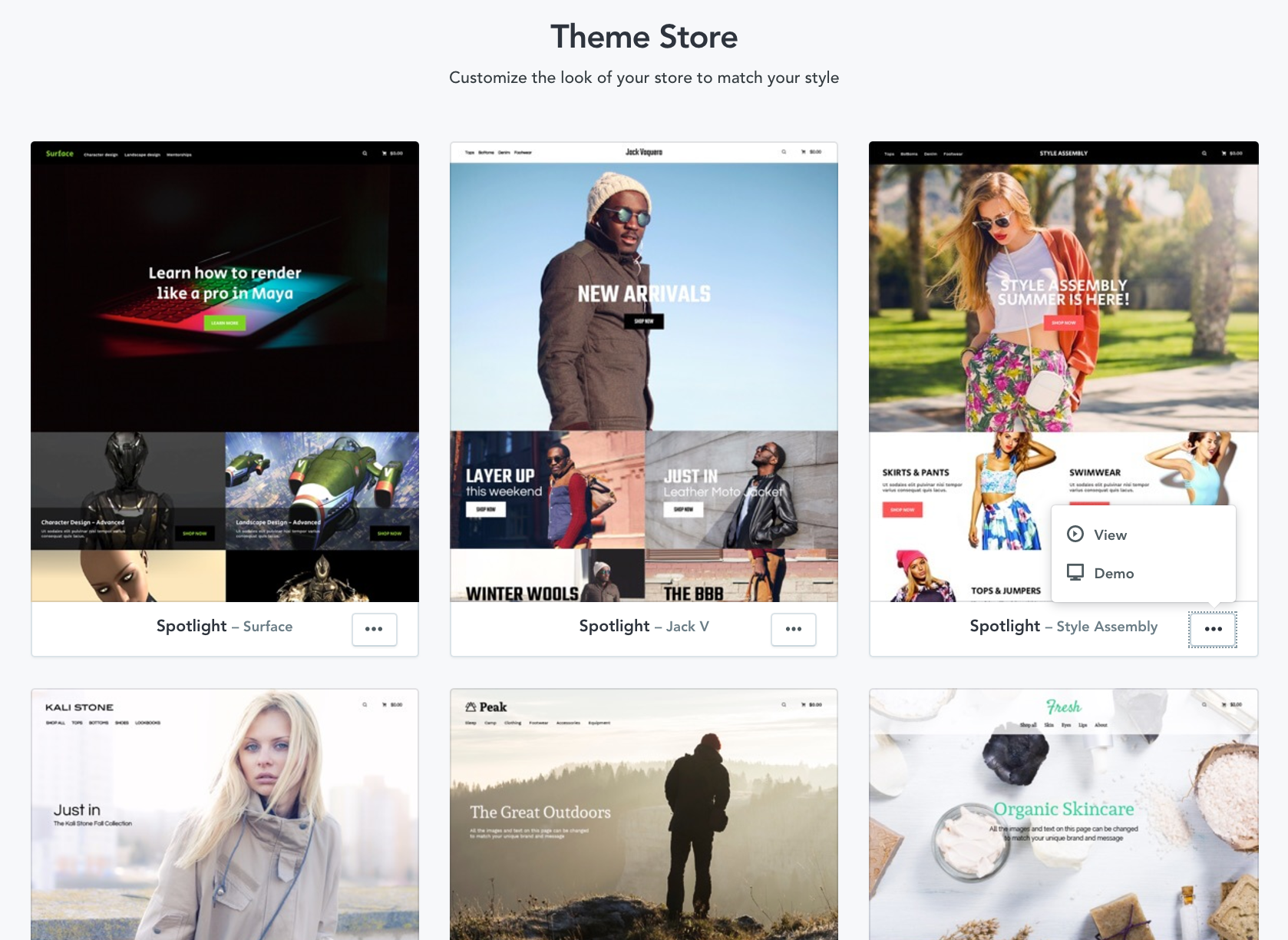 - Demo - Demoing a theme gives you a preview of how your store will look with this theme installed.