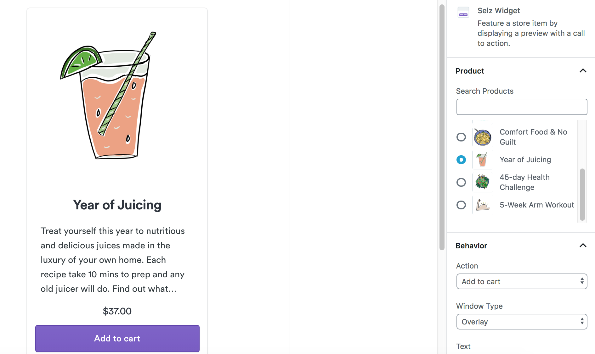 - You can adjust the widget behavior, width, and display just below the product selection