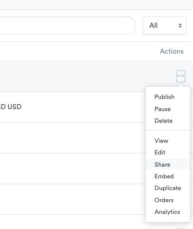 - Next, head over to your Items page. Find the item you want to Pin to Pinterest, then click on the little '...' next to your product > Share: