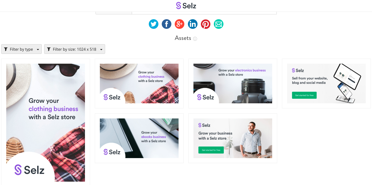 If you're part of the refer a friend program and the Selz Affiliate program, then you'll see a "Programs" button on the left instead of assets. Click on Programs, then on Selz.