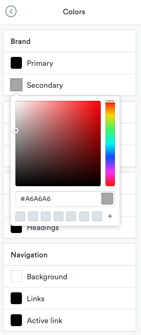 Optional | The placeholder text for the color, useful for displaying the default color like "#000000" |