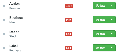 - Make sure that your published theme is up to date. If there is an update available click 'Update' before continuing to the next step.