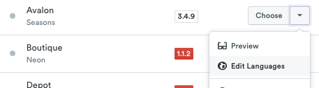 - Click on the drop-down arrow of your active theme and select 'Edit Languages'